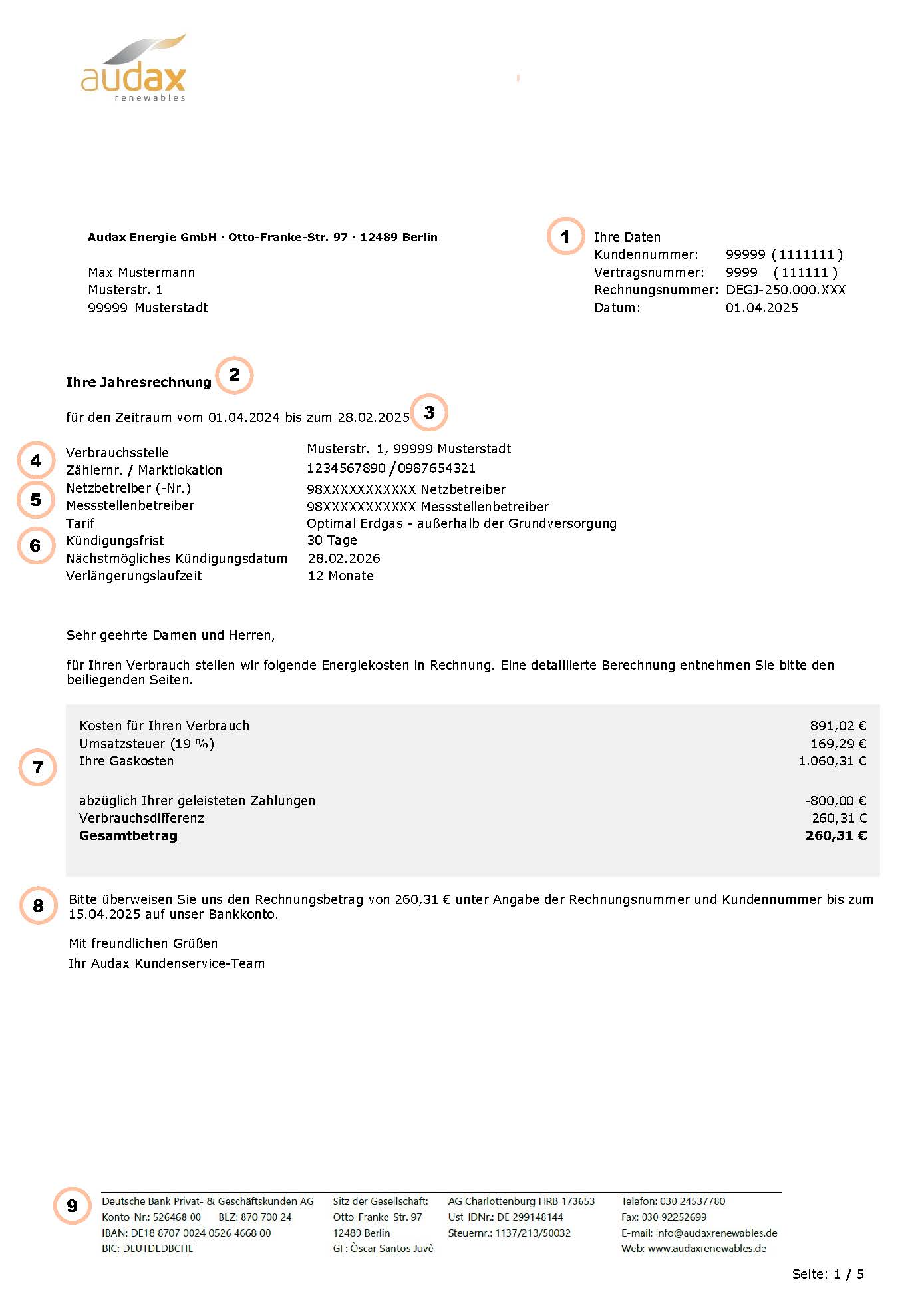 Auf Basis Ihres Jahresverbrauchs und unter Berücksichtigung des aktuell gültigen Gaspreises wird ein neuer monatlicher Abschlag berechnet. Dieser feste Betrag wird jedem Monat zu einem angegebenen Termin fällig. So verteilen sich Ihre Energiekosten gleichmäßig über das Jahr, anstatt das alles auf einmal gezahlt werden muss.