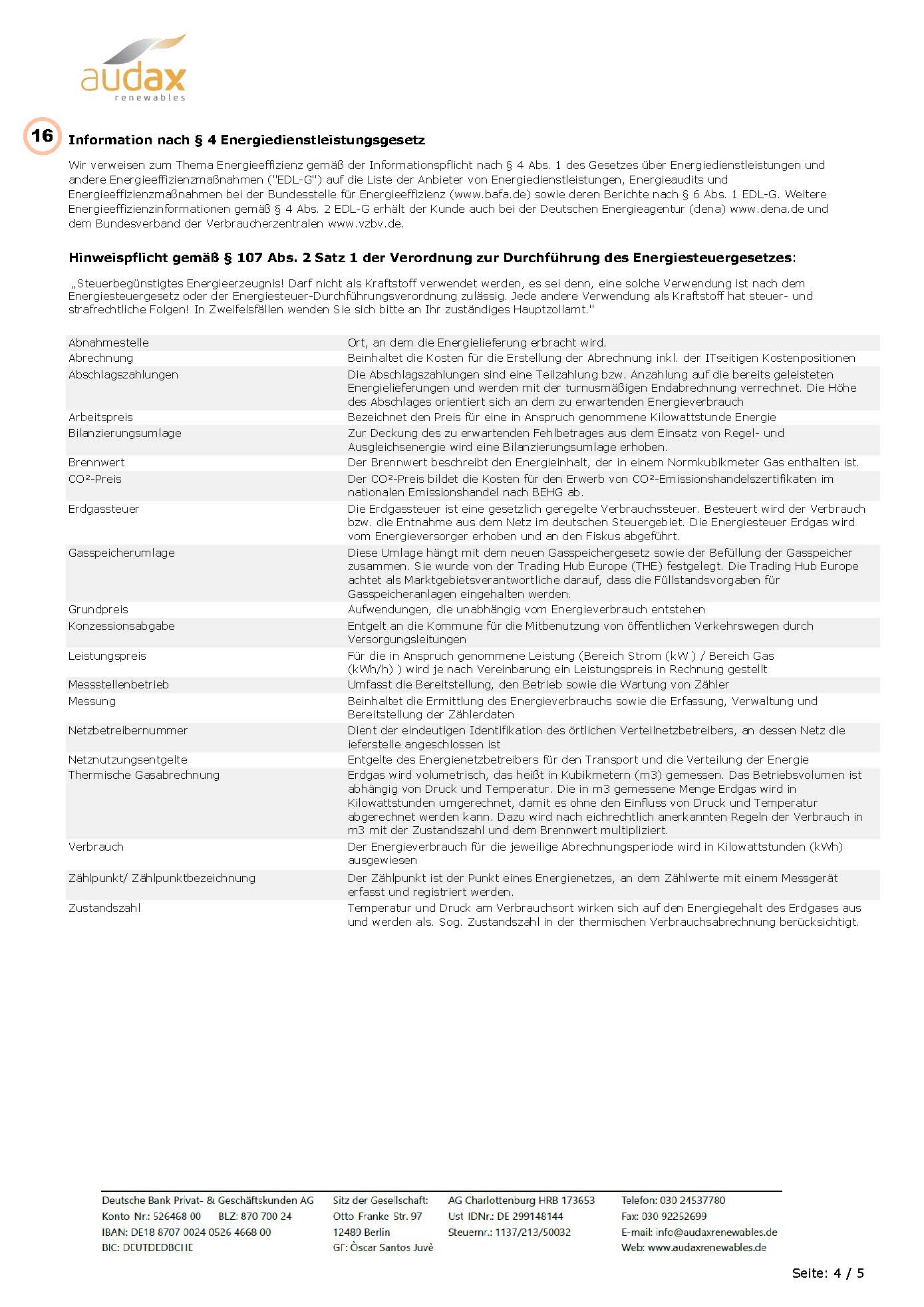 Die letzten beiden Seiten Ihrer Rechnung enthalten allgemeine und gesetzlich vorgeschriebene Informationen. Zusätzlich haben wir dort wichtige Fachbegriffe kurz erläutert. Damit möchten wir sicherstellen, dass Ihre Rechnung für Sie jederzeit nachvollziehbar und verständlich bleibt.
